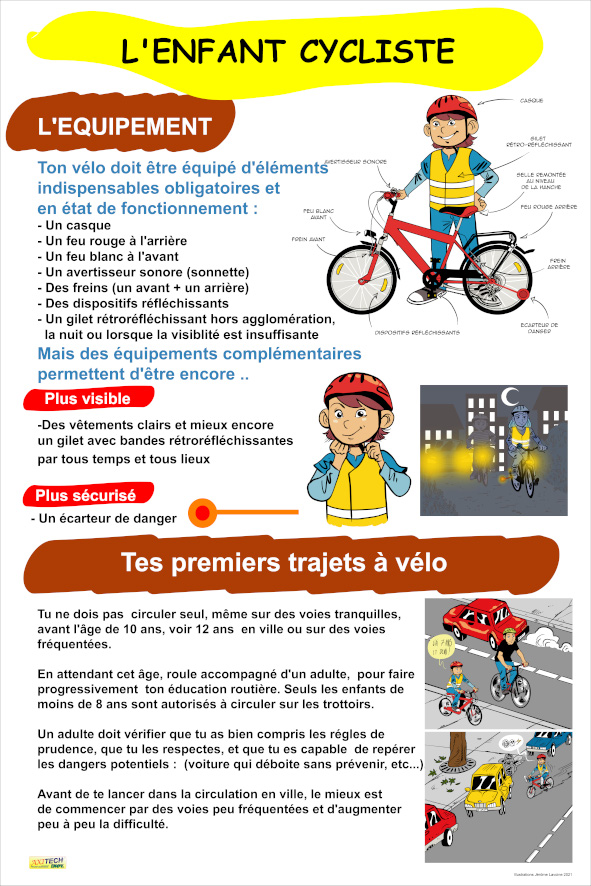 Les deux autres panneaux sont relatifs aux comportements et équipements de l’enfant en vélo et de l’enfant piéton.(conception Axitech)