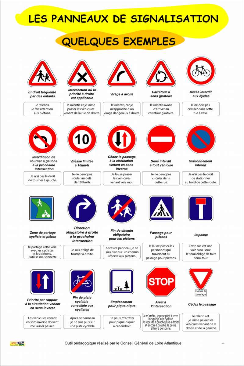 Le deuxième panneau donne un certain nombre d’exemples avec les informations nécessaires pour respecter le signal
