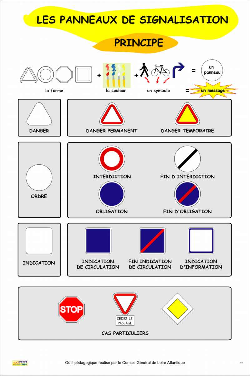 Le premier panneau explique le principe de la forme et des couleurs de la signalétique. Comprendre la différence entre: